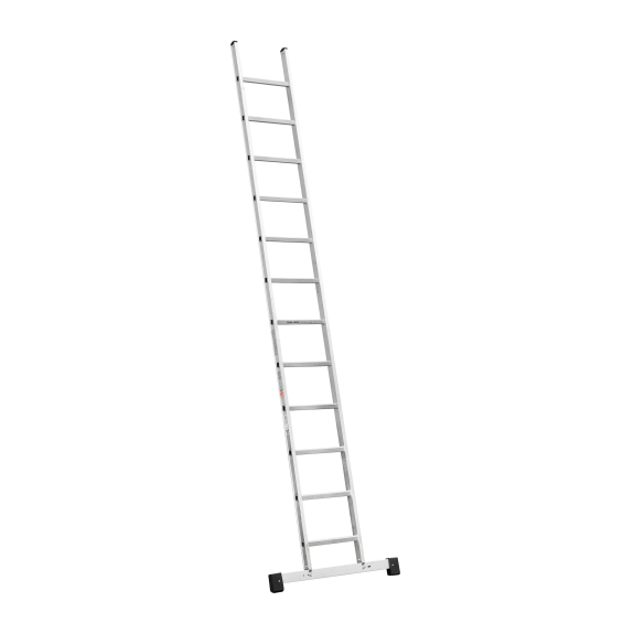 Diese Anlegeleiter ist für den industriellen Einsatz konzipiert und bietet dank ihrer extra Breite von 41 cm optimale Sicherheit. Sie ist mit rutschfesten Gummifüßen ausgestattet, die leicht austauschbar und in die Holme verschraubt sind.